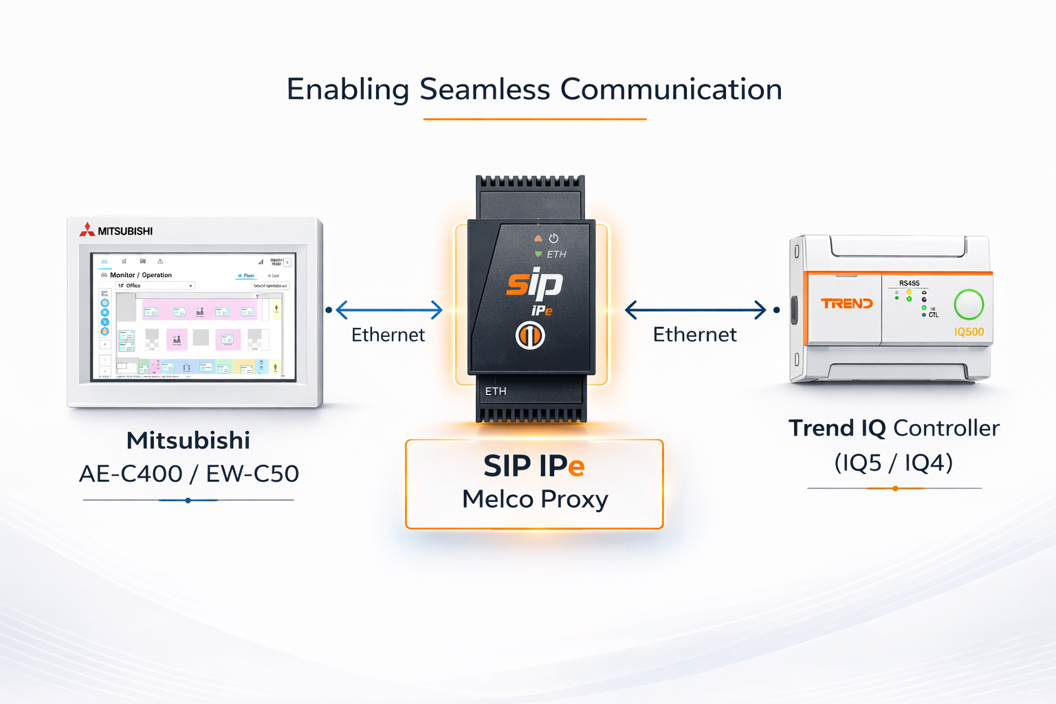 Trend IQ controllers and Mitsubishi AE-C400/EW-C50 controllers, removing the compatibility barrier and allowing your project to proceed smoothly.